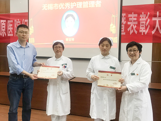 紀(jì)念大會(huì)首先為獲得無錫市優(yōu)秀護(hù)理管理者、無錫市優(yōu)秀護(hù)士、醫(yī)院“護(hù)理之星”、“優(yōu)秀護(hù)士長(zhǎng)”等榮譽(yù)的護(hù)士長(zhǎng)和護(hù)士們頒發(fā)了榮譽(yù)證書;隨后,蔣葉華副院長(zhǎng)做大會(huì)致辭,代表院領(lǐng)導(dǎo)充分肯定了醫(yī)院護(hù)理工作者們的辛勤付出和默默奉獻(xiàn);強(qiáng)調(diào)了護(hù)理工作在臨床診療中的重要性,護(hù)士已成為推進(jìn)健康中國建設(shè)的一支主力軍,在協(xié)助診療、救治生命、減輕痛苦、促進(jìn)康復(fù)等方面,都發(fā)揮著不可替代的作用,希望我院護(hù)理人員不斷提升職業(yè)技能,發(fā)揮專業(yè)價(jià)值,為醫(yī)院發(fā)展和患者健康貢獻(xiàn)更大力量。最后,大會(huì)進(jìn)行一年一度的“天使基金”現(xiàn)場(chǎng)募捐,募捐所得將繼續(xù)用于幫助困難患者。(護(hù)理部陳曉俠)