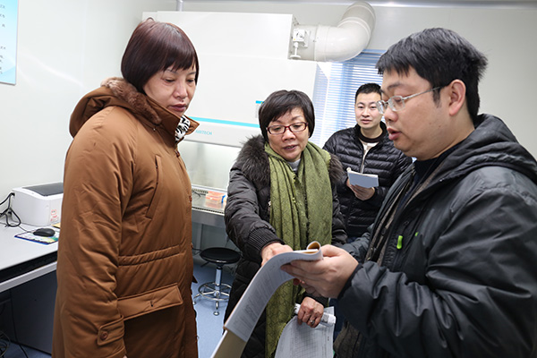 1月21日,江蘇省臨床檢驗中心趙建華主任和東南大學附屬中大醫院李麗主任受江蘇省衛生計生委的委托,來到我所基因實驗室實地進行技術驗收工作。我所包建東副所長向驗收組介紹了我所概況、江原醫院業務特色以及設立基因實驗室的現實立意和工作規劃;實驗室負責人蔡剛明詳細介紹了實驗室的軟硬件建設和運行情況;趙建華主任和李麗主任仔細聽取了上述匯報并給予了肯定評價。接下來,兩位專家來到實驗室,現場查看了實驗室設置及儀器設備配置情況、實驗室標準操作程序文件、實驗流程、質量控制情況及有關記錄;隨后,向實驗室發放了現場實驗標本,觀察實驗人員的現場操作并檢查現場實驗結果和記錄。在現場驗收結束后,趙建華主任代表驗收組給出了一些細節建議,認為我所實驗室符合開展臨床基因擴增檢驗項目的要求,可開展感染性病原體基因項目。