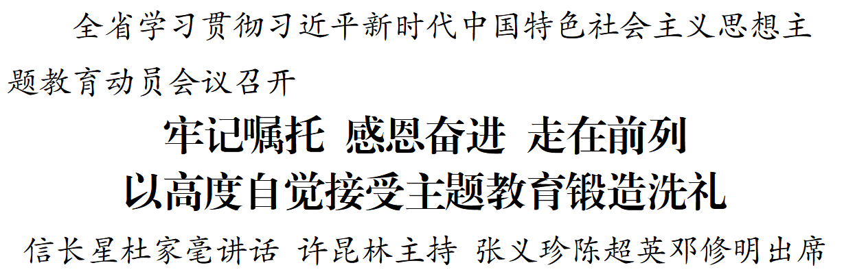 4月10日,全省學習貫徹習近平新時代中國特色社會主義思想主題教育動員會議召開。會議堅持以習近平新時代中國特色社會主義思想為指導,深入學習貫徹習近平總書記在中央主題教育工作會議上的重要講話精神,全面落實黨中央部署要求,對全省開展主題教育進行動員部署。省委書記信長星,中央第六指導組組長杜家毫出席會議并講話。