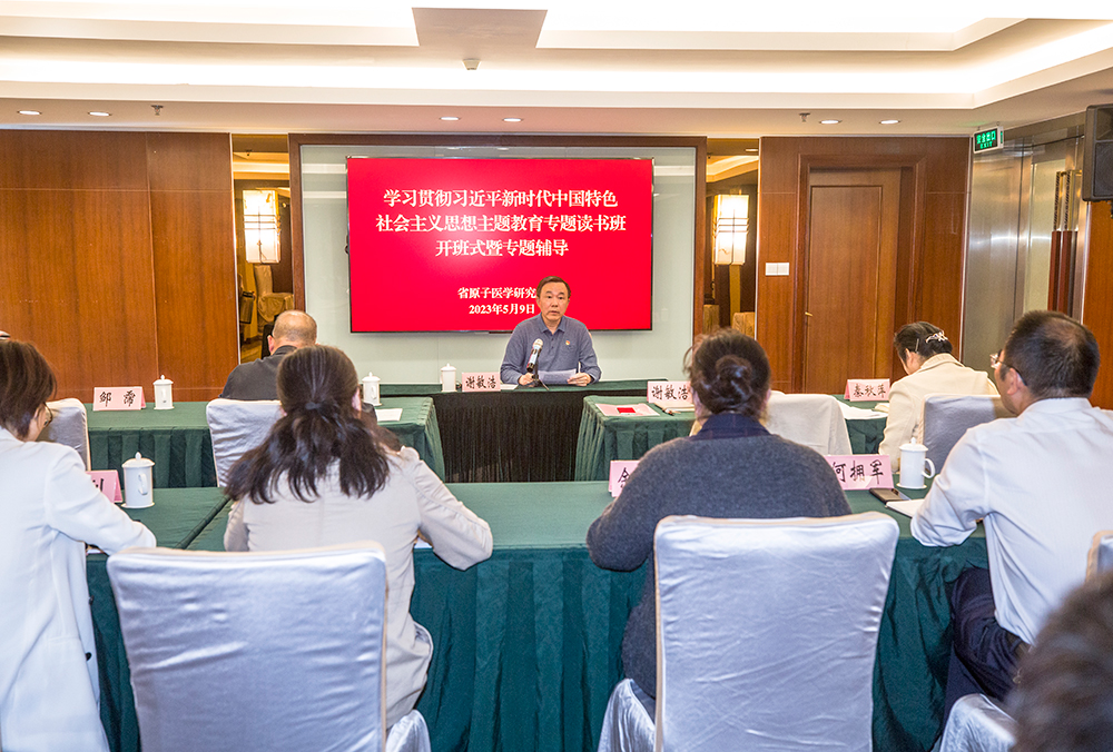 為扎實開展學(xué)習(xí)貫徹習(xí)近平新時代中國特色社會主義思想主題教育,5月9日下午,省原醫(yī)所舉辦專題讀書班開班式。所黨委書記、所長、所主題教育領(lǐng)導(dǎo)小組組長謝敏浩作開班式動員講話。全所中層及以上黨員干部及工團負(fù)責(zé)人20余人參加開班式。