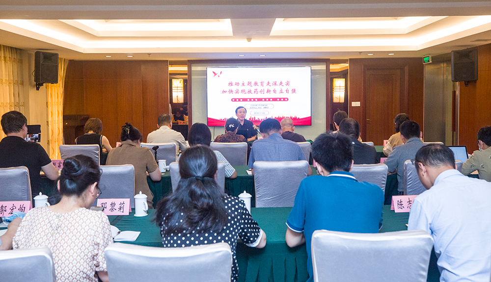 為深入推進(jìn)學(xué)習(xí)貫徹習(xí)近平新時(shí)代中國(guó)特色社會(huì)主義思想主題教育,根據(jù)省衛(wèi)生健康委主題教育工作總體部署和我所主題教育工作安排,7月18日下午,在江原山莊東林廳會(huì)議室,所黨委書記、所長(zhǎng)謝敏浩同志以《推動(dòng)主題教育走深走實(shí) 加快實(shí)現(xiàn)放藥創(chuàng)新自立自強(qiáng)》為題,為所中層及以上干部、在職黨支部班子成員及工團(tuán)負(fù)責(zé)人上主題教育專題黨課。