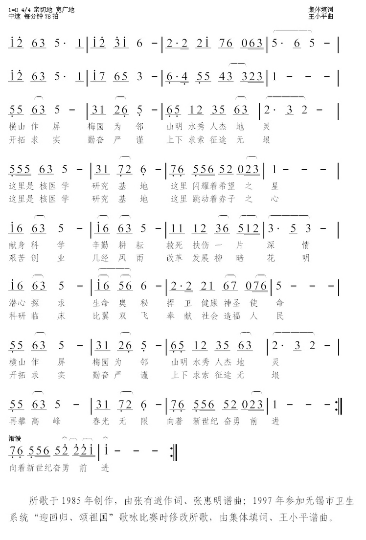 江蘇省原子醫(yī)學(xué)研究所所歌