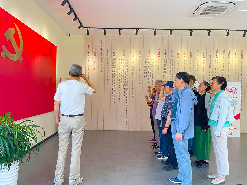 走出紀(jì)念館,步入紅梅黨建館,面對鮮紅的黨旗,老黨員和青年黨員們莊嚴(yán)地舉起右手,共同重溫入黨誓詞。錚錚誓言,字字鏗鏘,這既是對黨忠誠、永不叛黨的堅(jiān)定承諾,也是薪火相傳、接續(xù)奮斗的精神紐帶。