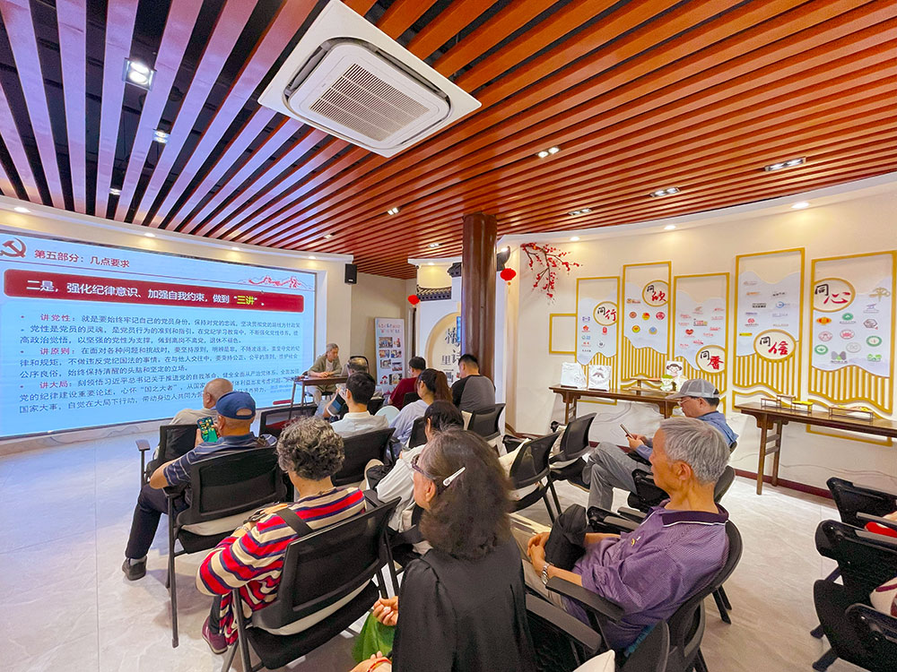 堅(jiān)守紀(jì)律底線,銘記黨紀(jì)要求,最后,大家來到梅里紅色會客廳,退休黨支部書記以《學(xué)紀(jì)、知紀(jì)、明紀(jì)、守紀(jì)》為題為大家上了專題黨課,帶領(lǐng)退休黨員和青年骨干共同學(xué)習(xí)了習(xí)近平總書記關(guān)于黨紀(jì)學(xué)習(xí)教育的重要講話重要指示精神,重點(diǎn)從修訂的背景和過程、重要意義、主旨要義、主要內(nèi)容等幾個(gè)方面對《中國共產(chǎn)黨紀(jì)律處分條例》進(jìn)行了解讀,并提出了三點(diǎn)要求,一是強(qiáng)化學(xué)習(xí)教育、深化思想認(rèn)識,做到入耳、入腦、入心;二是強(qiáng)化紀(jì)律意識、加強(qiáng)自我約束,做到講黨性、講原則、講大局;三是堅(jiān)守黨的紀(jì)律、維護(hù)黨員形象,做到比信念、比貢獻(xiàn)、比健康。