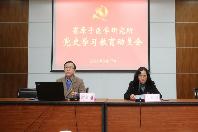 3月17日,在所學術報告廳,我所召開黨史學習教育動員會,黨委書記、所長、所黨史學習教育領導小組組長謝敏浩作動員講話并上黨課。會議由黨委副書記秦秋萍主持。所領導班子成員、全體黨員、黨員發展對象參加會議。