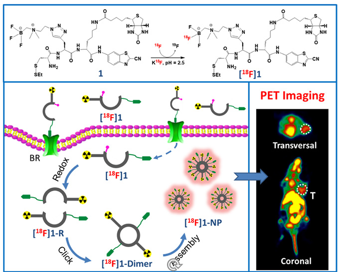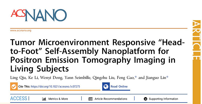 近日,我所創新藥物研究中心林建國研究員、邱玲研究員團隊在中科院1區Top期刊《ACS Nano》(IF=15.881)上在線發表論文,報道了一種腫瘤微環境響應激活型智能小分子PET探針,成功實現了探針放射性信號較長時間滯留在特定的靶組織中,達到了高特異性、高靈敏度的PET顯像效果,為發展新一代核素靶向診療分子探針提供了新的策略。