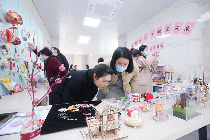 刺繡、編織、鑲嵌、拼搭;紙藝、布藝、木藝、金藝;冬奧、國風、二次元……在3月4日舉辦的女職工手工藝作品展上,多個門類、不同主題、各式風格的手工作品琳瑯滿目、精美可愛,引得大家贊嘆連連。正所謂“佳節如期迎女神,錦繡琳瑯展巧紅。白衣似雪勇無敵,纖指如蔥勾玲瓏。玄女織就五彩緞,嫦娥捧出冰墩墩。二月二日龍抬頭,譜寫華章正青春!”(文:魏利、齊效君)